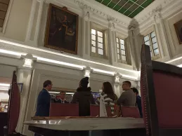 Esta visita institucional, que surgió en parte por la iniciativa de Rodríguez y por el "proactivo" interés de los alumnos, comenzó con la visita a la biblioteca del ICAM. Un servicio al que, como estudiantes del máster, ya pueden acceder entregando un resguardo del certificado de matrícula del máster de abogacía.