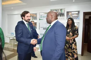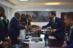 El presidente del Grupo Educativo CEF.- UDIMA, Arturo de las Heras, ha realizado una visita de una semana a Guinea Ecuatorial donde se entrevistó con un grupo de directivos del Banco Nacional de Guinea, BANGE, liderados por su director general Manuel Osa Nsue Nsua y su directora general adjunta Mari Cruz Engonga Obono. BANGE es el propietario de la Escuela de Negocios BANGE Business School, BBS, con la que el grupo español viene desarrollando diferentes colaboraciones desde 2020.