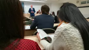 El programa incluye visitas al Congreso General de la Abogacía, al Tribunal Supremo en juicios sonados..., cosas que "también forman parte de la práctica profesional", ha señalado Sánchez. Las clases no se reducen a "esto dice la ley, ahora a estudiar", subrayó, sino que también se hacen "simulacros" de juicios en las clases. "No temáis equivocaros; nadie toma una decisión en su vida estando seguro al 100%", confió Villarreal.