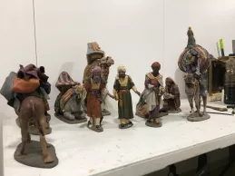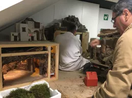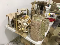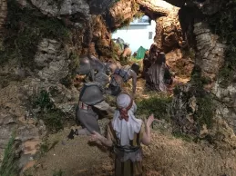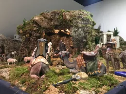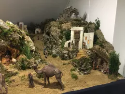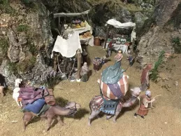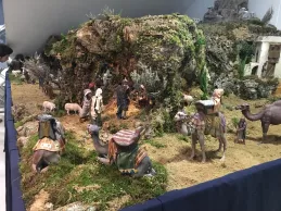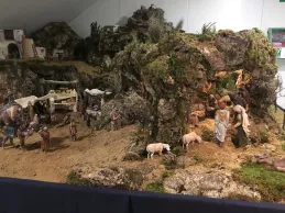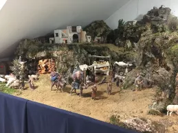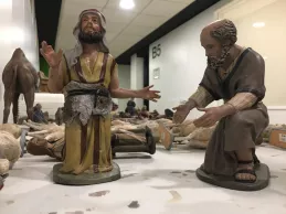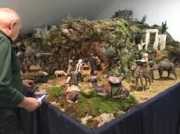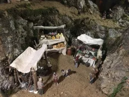 “Estamos montando un Belén tradicional hebreo con las escenas de la Natividad, los Reyes Magos adorando al Niño Jesús, y una anunciación a los pastores”, expuso José Ignacio Díez, restaurador. Además de estas imágenes, la composición cuenta con escenas populares. “Hay un mercado, una prensa y casas de diferentes tamaños”, añadió. En el mercado, “las cestas, las frutas y los quesos están hechos a mano”, destacó su compañera Cristina Ferrer.
