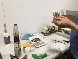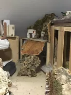 Las estructuras habitables van unidas por maderas y tornillos a otras fabricadas con escayola. Así se hicieron una cueva con un diorama y el portal de la Virgen María y San José, detalló Díez. También se empleó alcornoque. En el suelo y los alrededores, los ‘Belenistas’ esparcieron arena. Concretamente, para la obra se emplearon 4 sacos de 25 kilos, tanto de arena de río como de miga. Para imitar a la naturaleza, el Belén lleva también un musgo procedente de Dinamarca, subrayó.