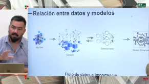 Un sistema de inteligencia artificial es aquel que viene a sustituir en algún grado a la inteligencia humana. Para ello se nutre de datos, y emplea diferentes recetas para dar ese resultado: eso es un modelo. El modelo se entrena para que sepa en qué contexto está y pueda hacer pequeños cambios, es decir, que aprenda y se adapte. Eso es la IA: un algoritmo programado para una tarea junto a otros para "dar un resultado a partir de lo que tiene, pero contextualizándolo", detalló Núñez.