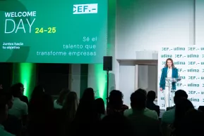 Pero todavía no era el día para pensar en materia, continuaba la profesora del área fiscal del CEF.-, sino para mentalizarse, ponerse "la camiseta CEF.- UDIMA" y preparase para lo que les espera: un viaje en una institución "que engancha", aseguró Cámara. En ella, íntimamente ligada al quehacer empresarial y social, también desarrollarán habilidades y competencias más allá de la técnica. Un ejemplo de ello es la profesora Macarena Serrano, que aportó su trayectoria desde el mundo del Derecho hasta la docencia, que definió como "inspirar con experiencia y vivencias".
