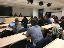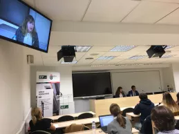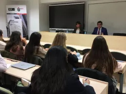 Por su parte, la profesora del Máster en Práctica de la Abogacía de la UDIMA señaló los detalles de los delitos propios del abogado (y "del procurador" según la estricta, según explicó). Villarreal habló de la deslealtad profesional "de parte" y deslealtad profesional "de perjuicio de parte" y explicó sus diferencias y agravantes a los asistentes.