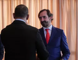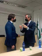 El director de Relaciones Internacionales, Fredy Araujo, y el director de Comunicación del Grupo CEF.- UDIMA, Luis Miguel Belda dieron la bienvenida el primer lunes en la sede principal del grupo educativo en Madrid a la delegación de autoridades municipales dominicanas. La primera de las formaciones impartidas correspondió al profesor Jaime Pintos, uno de los mayores especialistas en contratación pública en España.