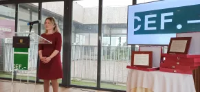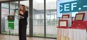 María Teresa Bote colaboró desde la Editorial CEF.- con los temarios de jueces, fiscales y letrados de Justicia, y actualmente es profesora de derecho mercantil. Además de cumplir un cuarto de siglo en la escuela de negocios, tiene un cargo "complicado", reconoció Roque de las Heras: defensora de todo el personal universitario. "Para mí es un placer y un orgullo seguir formando parte de esta gran familia que es el CEF.- UDIMA", resumió ella.