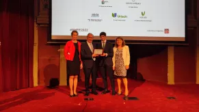 Los fundadores de otras compañías galardonadas como ejemplares por E2IN2 son Remedios Navarro y Javier de la Rosa de ATIDA MiFarma; Juan Uriach Marsal, de Uriach; Isidoro Delclaux Aróstegui, de Vidrala, y Pablo Piñero, del Grupo Piñero.