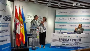 El fundador del Grupo Educativo CEF.- UDIMA, Roque de las Heras, fue distinguido este viernes con el premio a empresario ejemplar de la educación del XI Curso Universitario ‘Prensa y Poder’, que se celebró en la Ciudad de la Educación de San Gabriel, en Aranda de Duero (Burgos).