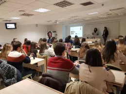 Alicia Gómez y Patricia Mateos, del departamento de Capital Humano de PWC, mantuvieron este martes un encuentro con estudiantes de las áreas de Asesoría de Empresas, Abogacía y Tributación del CEF.-, en el marco de una sesión informativa donde se presentó la empresa y el procedimiento de selección que se gestiona desde Recursos Humanos de esta compañía.