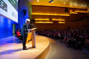 El presidente del Consejo General de Colegios de Economistas de España, Valentín Pich Rosell, padrino de la última promoción de alumnos del Grupo Educativo CEF.- UDIMA en su sede en Barcelona, trasladó a estos un mensaje de confianza en el futuro laboral en el país: “Sí, hay problemas pero también grandes oportunidades”, afirmó durante su intervención en el Solemne Acto de Graduación que acogió el Auditorio AXA de la Ciudad Condal.